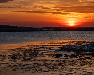 The first two photos (made with a typical landscape lens) were made roughly nine and a half hours apart. The sunset and rises on the remaining days of my stay were unremarkable.