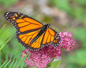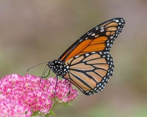 Late this afternoon, Joan noticed a monarch butterfly on some sedum in the flower bed by our deck. Of course, I took the camera (rigged for odes) out to get a few photos.