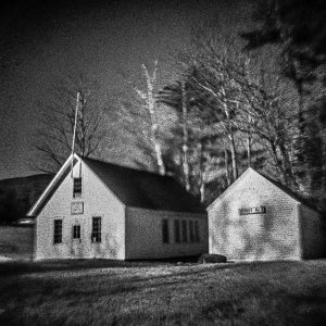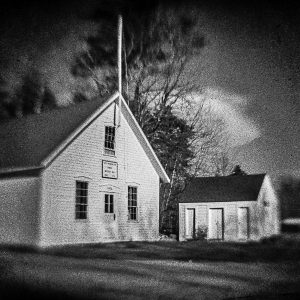 The small building with three doors next to the District #5 schoolhouse had an interesting function. It is a combination outhouse (with separate sides for boys and girls) and woodshed.
