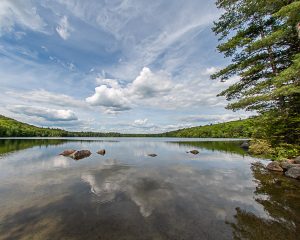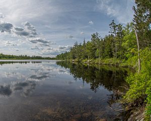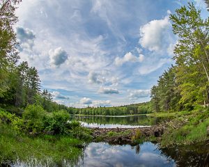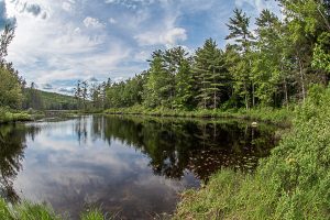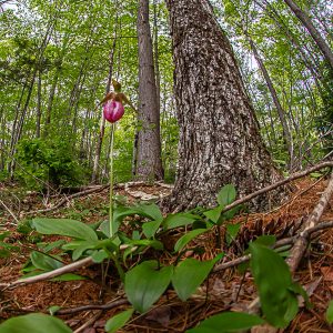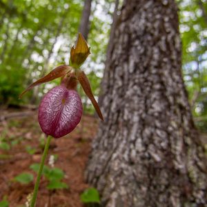 The result of that thought was the first photograph shown below. Yesterday, I headed over to NH Audubon’s Willard Pond sanctuary where I know of a large patch lady slippers. I mounted my fish eye lens and photographed the blooms. I got lucky and found two plants close together (the second photograph). I also made a few exposures with a regular lens (the fourth photo).