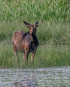 Late this afternoon, I spent about forty minutes watching (and photographing) a young male moose in shallows of Gregg Lake north of the road*.