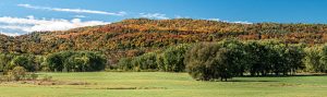 The Hall Stream panorama is a single frame.. Hall Stream is the border beween NH (the part of NH north of Vermont) and Quebec. The line of still green trees at the far edge of the hay field runs along the stream. The hillside with the fall foliage is in Quebec.