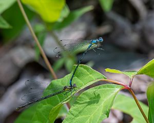 Along the road the most common odes were chalk-fronted corporals; mostly males but a few females were observed. There were not many odes along the shady trail but when I ventured down to the waters edge I found small numbers of damselflies.