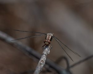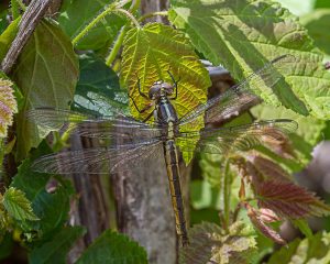Along the railroad bed, the most common ode was an Emerald… that was obvious from the bright green eyes. There were dozens of these critters all along the rail bed, but they were all in constant motion. I watched one individual for more than five minutes patrolling about fifty feet of the rails. It never stopped flying in that interval; very frustrating to this photographer of perched odes!